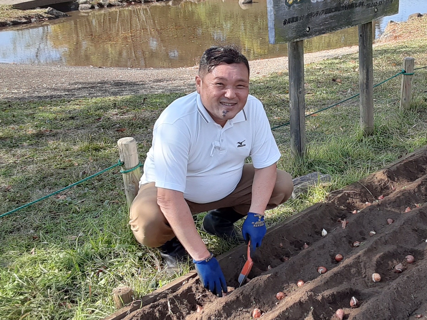 花と緑の会では多摩川中央公園にチューリップを植えています。